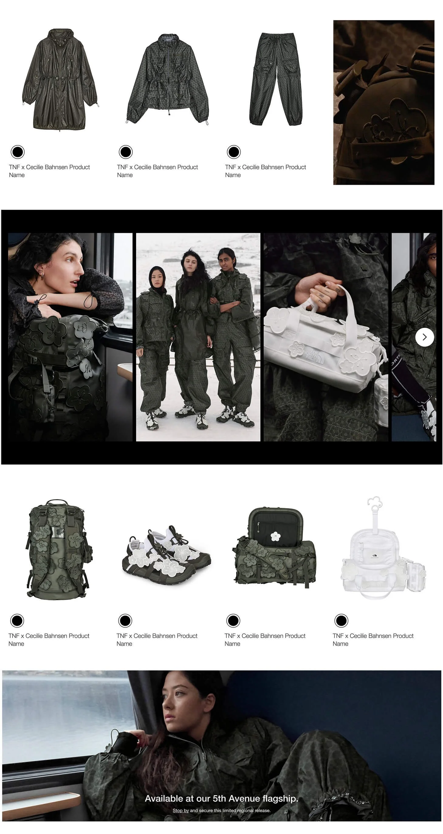 I led the design and system thinking for a global campaign supporting The North Face’s ongoing collaboration with Cecilie Bahnsen, focused on elevating the women’s product line through a balance of technical performance and feminine design.